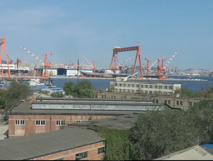据报道,2016年10月的某一天,航母上安装了舰岛结构,向航母竣工迈出了一大步。舰岛是容纳空中交通管制系统与舰桥的建筑,位于航母右舷侧。报道称该舰岛非常庞大,不得不分成两部分进行安装。大连船舶重工正在建造航母的结构。