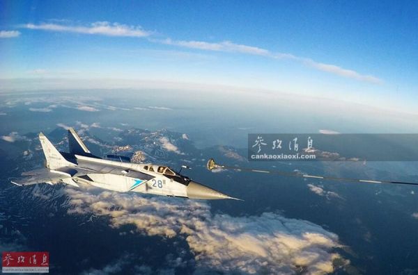 资料图:米格-31BM在库页岛上空与伊尔-78加油机进行对接作业。
