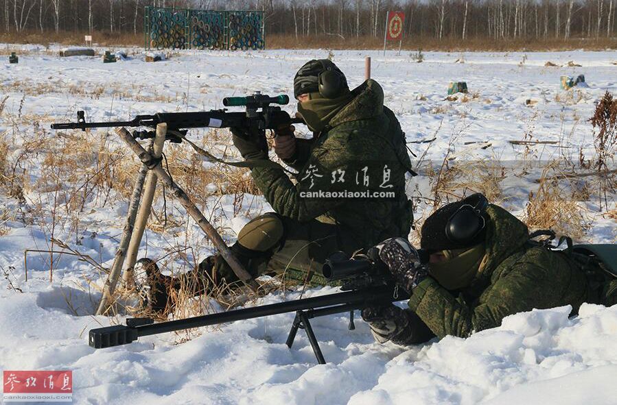 近日,隶属于俄东部军区的精锐狙击手部队参加了代号“陆军竞赛-2017”的比武竞赛,现场除了常见的SVD狙击步枪外,还出现了一种大口径重狙,这就是本图集的主角,KSVK反器材步枪。图为SVD狙击手(左)和KSVK重狙手在进行双狙演练。