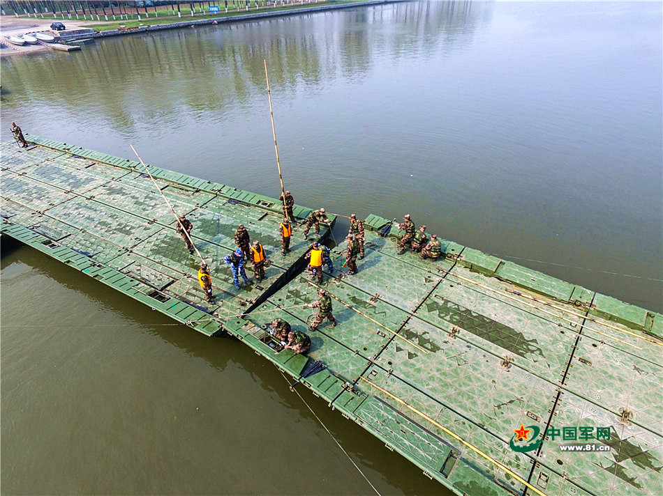 航拍浮桥架设:巨型积木这么“玩”(组图)